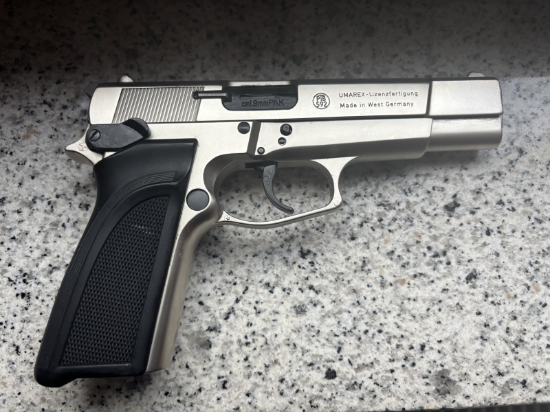 Hallo, zum Verkauf steht hier eine Schreckschusspistole der Marke Umarex Modell Browning Mod GP DA 9 ein paar ganz kleine Gebrauchsspuren aber sonst sehr schön erhalten. Ein Magazin!! Da Privatverkauf, keine Garantie oder Rücknahme!!!! Viel Spaß beim bieten