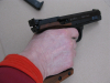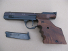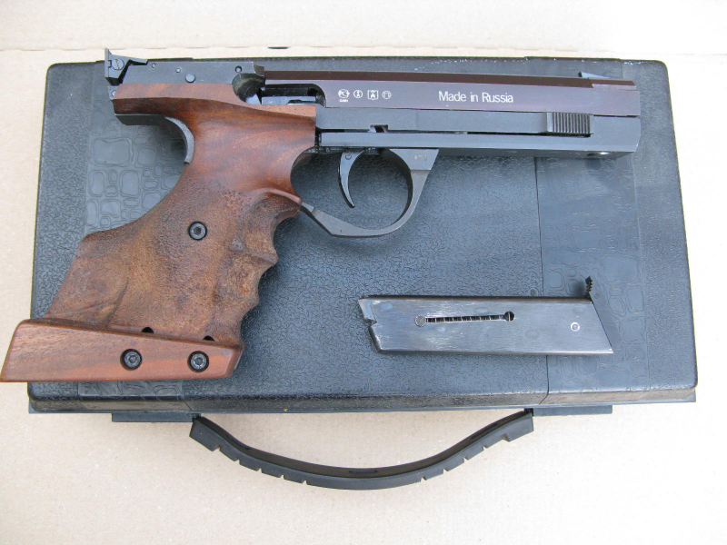 Aus dem Bestand eines Schützenkollegen biete ich diese unverbastelte IJ35 an. Sie scheint nicht viel geschossen worden zu sein, er hat sie vor Jahren aus dem Bestand eines verstorbenen Schützenbruders übernommen und selbst nicht geschossen. Ich habe sie auf dem Schießstand getestet, 50 Schuss CCI Standard ohne jedes Problem, 50 Schuss Uralt- Munition („Soft“) 2 Zündversager, die beim zweiten Mal, an anderer Stelle angeschlagen funktionierten, jedoch keinerlei Zufuhr- oder Auswurfstörungen. Tiptop. Ich habe keinen Präzisionstest gemacht, da ich hier volles Vertrauen in die Konstrukteure habe, meine 100 eher schnell geschossenen Schüsse passten aufs Schwarze der DSB-Präzisionsscheibe. Der Lauf ist spiegelblank. Der Morini-Griff hat die Größe M bis L, vgl Foto. Ich habe eine „M“- Hand, wenn man den Griff ganz eng stellt, müsste das auch passen. Es ist ein Magazin dabei und der mutmaßliche Originalkoffer aus grausligem Hartplastik. Die Schaumstoffeinlage war bröselig-klebrig und wurde entfernt.