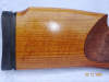 Schäftung: Helles Nußbaumholz mit sehr geringen Gebrauchsspuren. Rechts, feste Backe und verstellbare Kappe, UIT-Schiene.