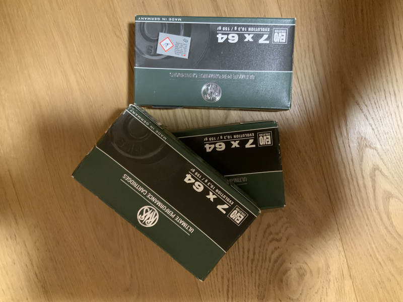 Biete hier 60 Schuss (3 Packungen a 20 Schuss) von RWS 7x64 Evolution Power Bonded 10,3 g / 159 gr an.