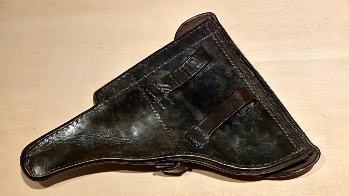 Für ein fast 90 Jahre altes Holster ist es in einem ziemlich guten Zustand, wie ich finde. Siehe Fotos.