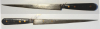 Afrikanisches Messer (?) mit 26,3 cm langer keilförmiger Klinge und Holzgriffschalen, Stahl, Gesamtlänge 40cm, guter Zustand mit Altersspuren, ohne Scheide