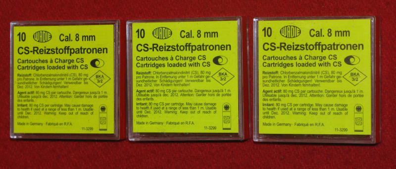 Zum Verkauf kommen 3 volle Packungen WADIE Cal. 8mm CS - Reizstoffpatronen