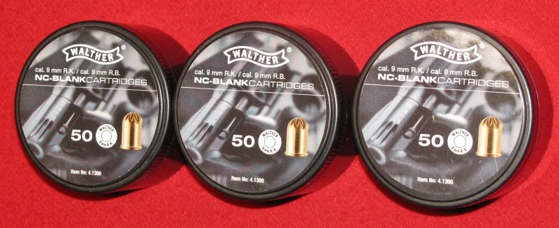 Zum Verkauf kommen 3 volle Packungen WALTHER cal. 9mm R.K. Platzpatronen