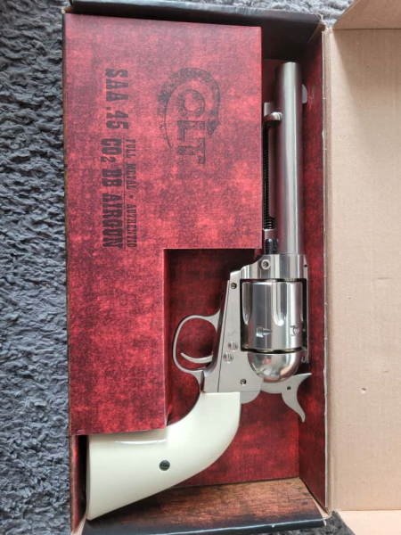Kaliber: 4,5 mm Diabolo.Mit Metallhülsen, Nickel Finish Ausführung.