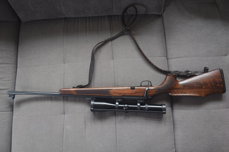 hier einen gebrauchten aber in Bestzustand und gepflegtem Zustand befindlichen Repetierer Tikka Kal. 222 mit Ziehlfernrohr Schmidt & Bender 3 - 12 x 50.