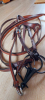 unbenutztes Pferdehalfter mit Zügel (Split Reins) und Gebiss. Geeignet für den Gebrauch oder als Deko sehr schön. Unter dem Motto: Es hängt ein Pferdehalfter an der Wand.