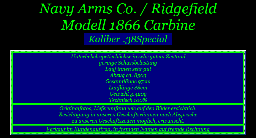 Artikel-ID: 20196430  •  ArtikelNr. des Verkäufers: 12355  •  Kategorie: Westernwaffen > Gewehre