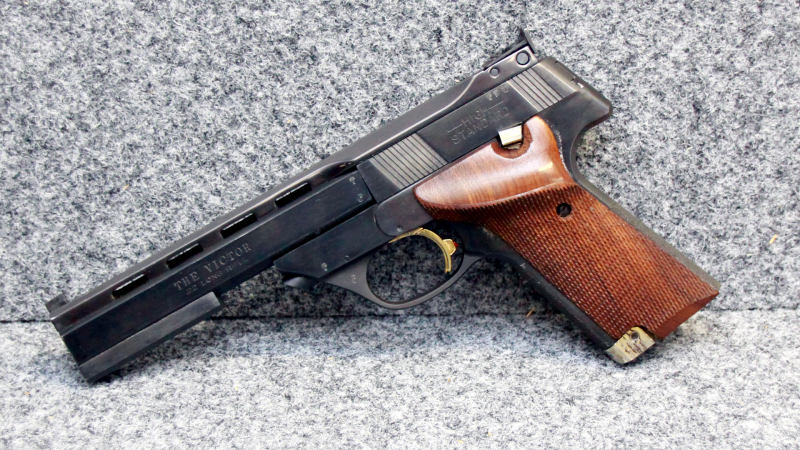 Die High Standard "The Victor" ist eine legendäre, halbautomatische Kleinkaliber-Wettbewerbspistole, gefertigt in den USA (z.B. Hamden, Connecticut). Dieses Modell gilt neben der Supermatic als eine der besten und präzisesten KK-Pistolen ihrer Zeit und ist ein begehrtes Sammlerstück sowie ein hervorragendes Sportgerät, wenn es sich im einwandfreien Zustand befindet.