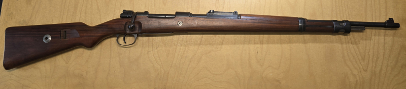 Zur Auktion kommt ein schöner früher K98k aus Vorkriegsproduktion (K- und G Code, 1934-1935) Mauser S42. Kaliber 8x57 IS. Lauf, System, Visier und Schaft nummerngleich. Lauf matt mit tiefen Zügen. Sehr schöner Schaft. Noch ohne Beschriftung der Hülse. Schöne Schaftstempel (siehe Fotos). WaA Abnahme. Neubeschuss 2024. Viel Spaß beim Bieten.