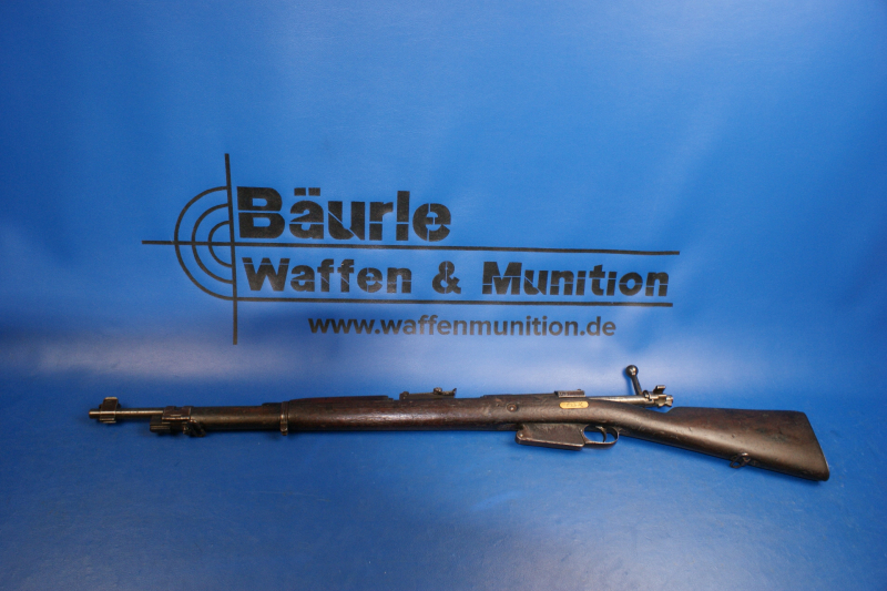 Auf dem Verschluss der Waffe befindet sich die Inschrift ETAB TS Pieper Herstal, das Markenzeichen der Herstal-Fabrik, die die Waffe umgebaut hat. Vermutlich belgisches Kaliber 7,65 x 53. Es wurden viele Mauser 1889 (ca. 100.000 St.) zu einer kürzeren, moderneraussehenden Waffe umgerüstet. Holzkontrollnummer: 633 K. Lager- und Gebrauchsspuren.