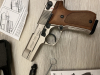 Verkaufe eine gebrauchte walther p88 in Nickel mit holzgriffschalen, abschussbecher und Koffer.