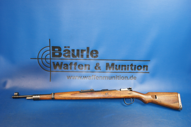 Hülsenkopf mit schreitenden Löwen, links "SNB 48", an der Führung Brünner Firmierung. Vollständige, originale Brünierung. Schichtholzschaft in Ausführung "Kriegsmodell" ohne Putzstock mit Winterabzugsbügel. Kornschutz. Fertigung teils aus noch vorhandenen Wehrmachtsteilen. Länge 110cm Vor dem Zweiten Weltkrieg hatte die Tschechoslowakei das VZ-24 Mausergewehr viele Jahre lang in ihrer Waffenfabrik in der Stadt Brno produziert, wobei sie die meisten ihrer Werkzeuge im Rahmen des Versailler Vertrags in den 1920er Jahren aus Deutschland bezogen hatte. Als das Dritte Reich 1938 bzw. 1939 das Sudetenland besetzte und den Rest der Tschechoslowakei annektierte, wurde die Waffenfabrik in Brno in die Rüstungsindustrie der Nazis eingegliedert. Das VZ-24 wurde weiterhin als G24(t) hergestellt und 1940 wurde die Produktion des Bergsteigerkarabiners G33/40 für die deutsche Armee aufgenommen. All dies änderte sich 1943, als der Druck auf die deutsche Rüstungsindustrie und die Neuorganisation der Gewehrproduktion im Reich erforderten, dass das Werk in Brno neu zugewiesen wurde, um mit der Produktion des Standard-Dienstgewehrs K98k zu beginnen. Gleichzeitig übernahm das Werk auch die Führung bei der Herstellung des MG34, obwohl das MG34 bei der Infanterie weitgehend durch das MG42 ersetzt worden war. Dies lag daran, dass das MG34 besser für statische Verteidigungspositionen in Festungsanlagen und für den Einsatz in gepanzerten Fahrzeugen geeignet war. Von 1942 bis 1944 verwendete das Werk in Brno (damals bekannt als Waffen-Werke Brunn) den Herstellercode „dot“, der 1945 jedoch auf „swp“ umgestellt wurde.