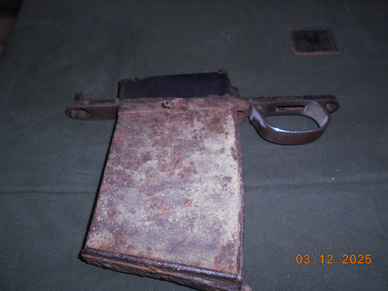 Selten! original Grabenmagazin für ein Gewehr 98 aus dem 1. Weltkrieg. Bodenfund. So in den 80er Jahren in Frankreich im Wald von Apremont aufgefunden. narbig, keine Durchrostungen, stabil, fest, nicht bröselig. Innenleben verrostet, nicht funktionsfähig. War jahrelang an einem Deko-Gewehr 98 montiert. Der leere Magazinkasten ist noch bei dem Magazin dran und wird mitgesendet. Versandkosten EU-ausland euro 19,95.