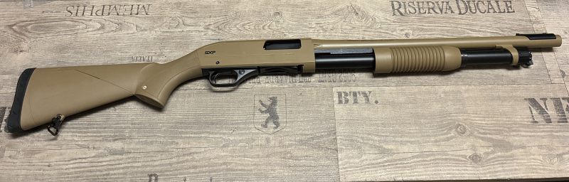 Zum Verkauf steht eine Vorderschaftrepetierflinte SXP Dark Earth Defender aus dem Hause Winchester im Kaliber 12/76.
