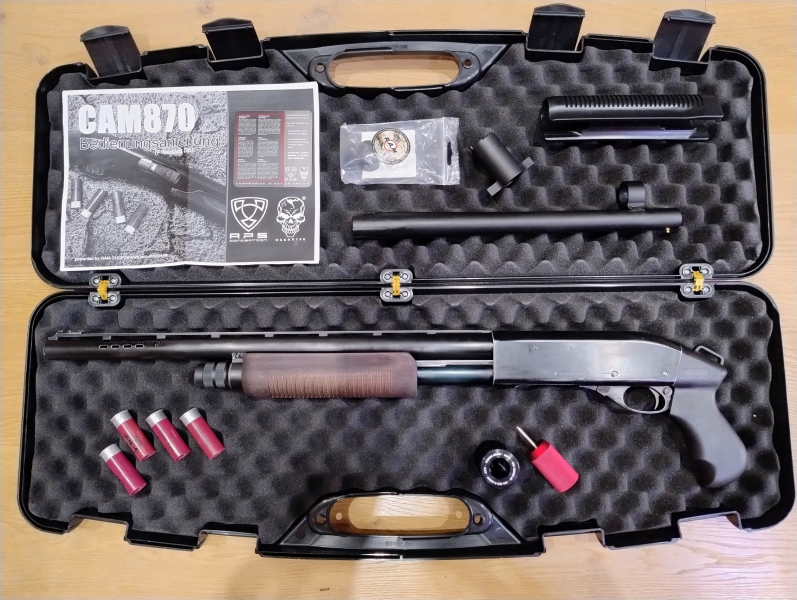 Verkaufe hier eine "gebraucht" (Top Zustand - sehr selten benutzt) APS CAM870 MK3 Cal.68 Paintball/Home-Defense Co2 Shotgun der Firma RAM-Shop 24 mit F-Zulassung!!! inkl. diversem Zubehör (Smart Co2 Charger für 88g Kartuschen - CAM870 Shell Charging Aid/Ladehilfe Tool - 4 Stück Smart Shells MK3 Rot mit F im Fünfeck usw.) und Koffer - OVP nicht mehr vorhanden - Lieferumfang wie auf Foto. Technische Daten: Kaliber: .68 - Magazinkapazität: 5+1 - Energie: ca. 7 Joule - Versand mit DHL Paket versichert & mit Tracking - Bezahlung mit Banküberweisung oder mit PayPal FREUND. Frei verkäuflich ab 18 Jahren - Altersnachweis erforderlich! Information für den Käufer - muss laut Gesetzgeber leider sein: Es handelt sich um einen Privatverkauf. Deshalb schließe ich jede Gewährleistung, Rücknahme und alle Schadensersatzansprüche im Zusammenhang mit dieser Auktion und dem verkauften Artikel aus!