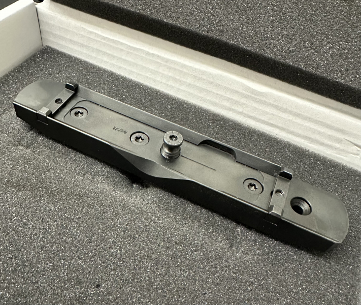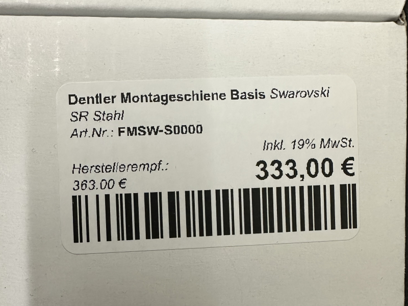 Zum Verkauf steht eine neuwertige Stahl Montage von Dentler für Swarovski Schienen.