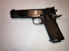 Verkaufe abgebildete Waffe Caspian/Les Baer im Kaliber .45 ACP. Ich habe mit der Waffe nur 2 Magazine verschossen, da ich die Funktion testen wollte. Sie schießt sehr gut und ohne Störungen. Die Waffe wurde als Büchsenmacher-Arbeit vom 1911 Spezialisten Konrad Krappmann auf Basis eines Caspian Griffstücks ohne Rampe und eines Les Baer Schlitten sowie eines Les Baer Match Laufes (incl. Match Bushing) gebaut. Weiterhin wurde eine Ed Brown Beaverteil Safety angepasst und eine doppelseitige Ed Brown Sicherung verbaut, ebenso ein Videcki Match Trigger. Eine Bomar Visierung und ein verschiebbares Korn wurden in den Schlitten eingefräst.