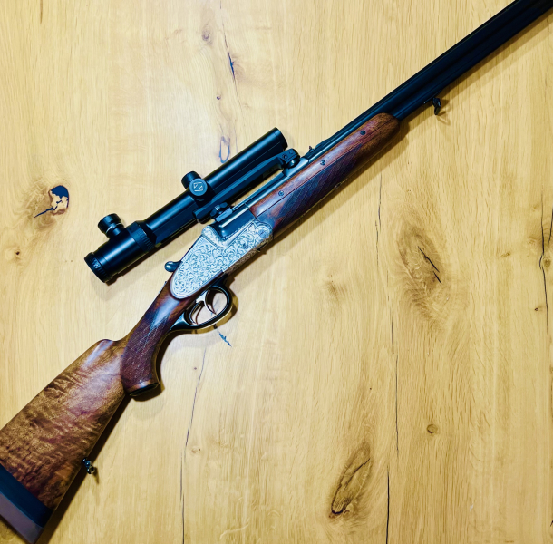 Die Waffe verfügt über echte Seitenschlosse sowie eine elegante, tief gravierte Seitenplatte und zeigt eine hervorragende Präzision.