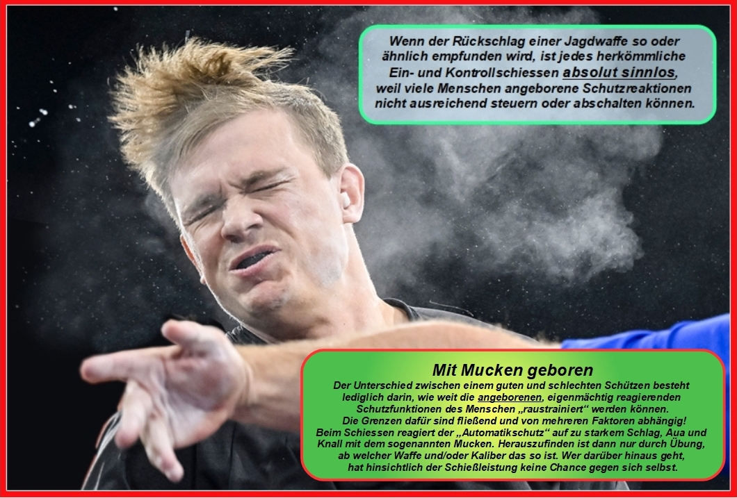 Zudem kann bei größeren Kalibern der oft besonders beim Einschiessen als unangenehm empfundene Rückschlag erstmalig um bis zu 80% (!) reduziert werden, was eine ungewollte Angewöhnung des "Muckens" sicher verhindern kann.
