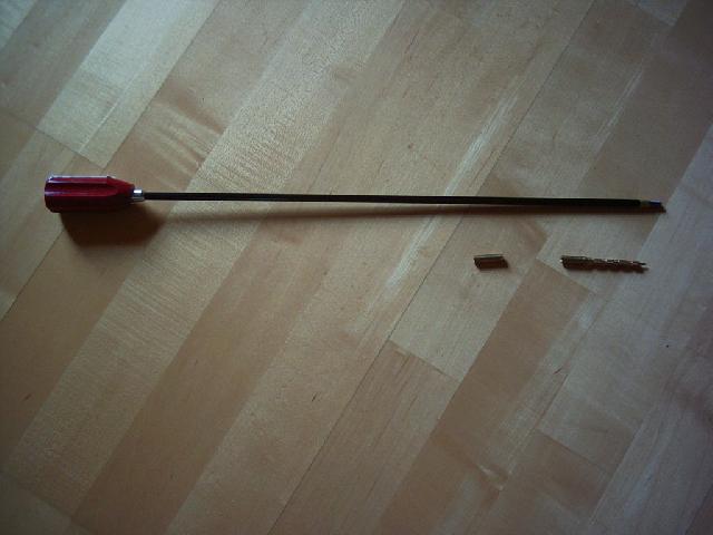 Sie bieten hier auf einen neuen Dewey Putzstock Kal. 7mm aufwärts,102 cm lang, incl. Bürsten Adapter und .30er Spitze. Ein hochwertiger Putzstock mit dauerhafter Kunststoffummantelung, schützt die wertvollen Läuft. Der Kern aus Federstahl sorgt für die nötige Stabilität. Durch den kugelartigen Griff folgt der Patch oder die Bronzebürste exakt dem Drall.