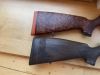 Verkaufe hier aus Platz-, Alters- und mittlerweile auch aus Gesundheitlichen Gründen 2 bildschöne R93 Büchsen. Der Stutzen im Kaliber 8x57IS hat einen Achtkantlauf mit Stahlvisierung,der Schaft wurde von der hervorragenden Thüringer Schaftbildhauerin Gabriele Heinze mit Eichenlaub und Schuppenfischhaut versehen. Die Griffkugel aus Stahl ist handgraviert von Kati Mau mit Eichenlaub , scharfer Fischhaut und eingelegtem Goldfaden. Das Pistolengriffkäppchen aus Stahl ebenfalls von derselbigen Künstlerin handgraviert mit Eichenlaub und meinem Monogramm in Gold, das ist erstmal nicht Gegenstand der Auktion.