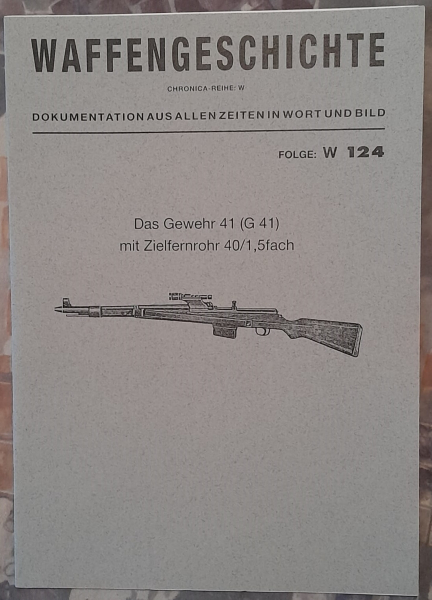 Sie kaufen hier von der Serie Waffengeschichte (Chronica-Reihe W) Folge: W124; Das gehwer 41 (G41) mit Zielfrnrohr 40/1, 5 Fasch von Pallas auf 7 Seiten.