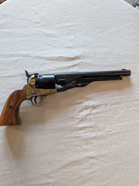 Zur Auktion steht ein gut erhaltener Navy Colt. Liegt seit 30 Jahren auf dem Dachboden und ist in gutem Zustand. Hahn spannbar und Entladungshilfe voll funktionstüchtig. Revolver ist aus vollständig aus Metall. Viel Spaß damit!