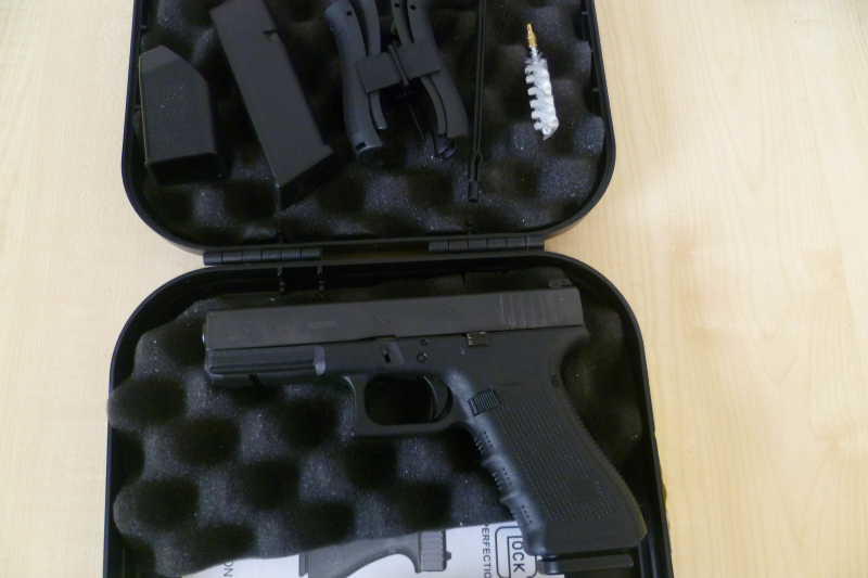 Zubehör: 1 Ersatz-Magazin, Ladehilfe, Putzzeug, Bedienungsanleitung, Griffrücken und Originalkoffer.