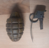 Sammlungsreduzierung: Verkaufe eine originale komplette frühe US MK2 Handgranate mit Zünder aus dem 2. Weltkrieg, mit gelber Farbe und Bodenfüllschraube! Deko, Innert! Komplett frei von gefährlichen und verbotenen Stoffen!!! Zustand siehe Bilder, diese sind Teil der Beschreibung!!! Rückgaberecht auf Originalität, nicht auf Zustand!!! Ansonsten gilt, da Privatverkauf kein Rückgaberecht!!! Versandkosten Österreich 8€, EU Länder 20€!!!