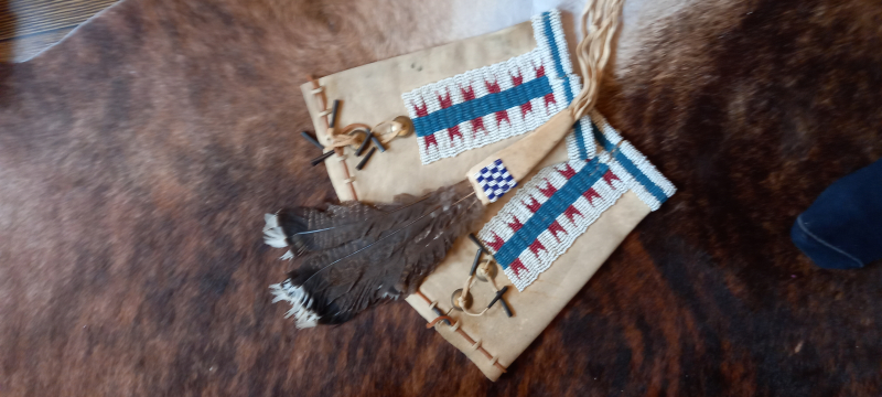 1x Ein Paar Schienbeinschoner aus Hirschleder mit Perlenstickerei,
