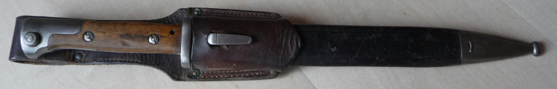 Dieses deutsche Bajonett ist gestempelt mit R.4.1 Hersteller: Alex Koppel. Der Koppelschuh könnte reissen, wenn man ihn abnimmt. Deshalb lasse ich ihn dran.