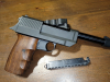 Sie bieten hier auf ein absolutes Highlight. Die Schreckschuss Pistole EM-GE 65 mit Stakkato Abschussgerät. Die EM-GE 65 hat das Kaliber 22 lang Knall. 10 schüssig. Keine Laufsperre Holzgriffschalen. Da das Magazin unter dem Lauf liegt. PTB 459. Made in West Germany. Per Knopfdruck kann der Lauf abgenommen werden und das Stakkato Abschussgerät aufgesetzt werden. Dieses ist 8 schüssig und hat das Kaliber 6mm Flobert Knall. Es können damit hintereinander 8 Leuchtkugeln hintereinander, waagerecht verschossen werden PTB 323