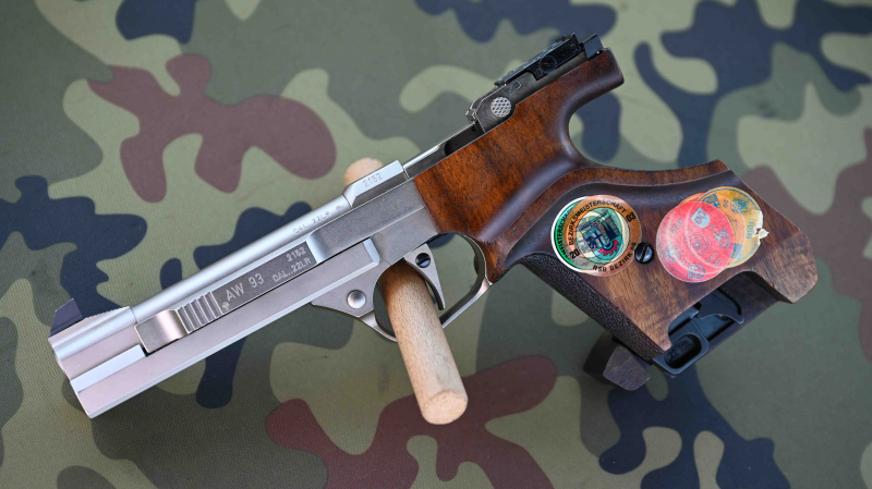 Rundum sehr gut erhaltene, fast noch neuwertige Matchpistole, halbautomatische Pistole, Sportpistole, KK-Pistole, hochwertige Selbstladepistole, Ganzstahlwaffe