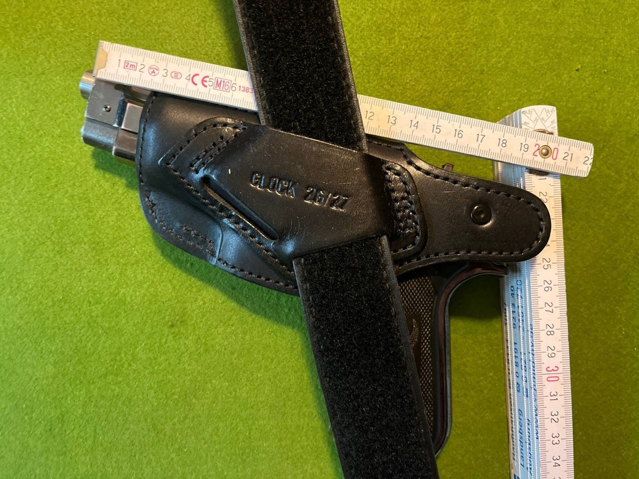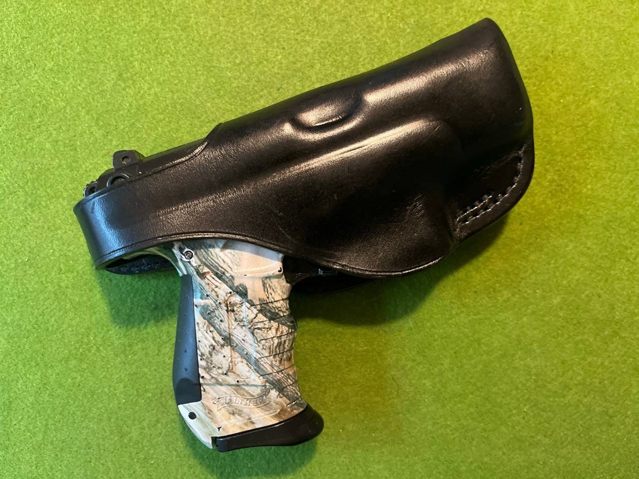 was stark vermuten lässt, dass das Holster auch für die bauähnliche PPQ entweder passend oder leicht anpassbar ist. Wem es nicht ausmacht, dass die Mündung der Waffe ein paar Zentimeter herausragt, das Titelbild zeigt wie eine Glock 17 (vom Griffstück genauso passend) in dem Holster aussehen würde.