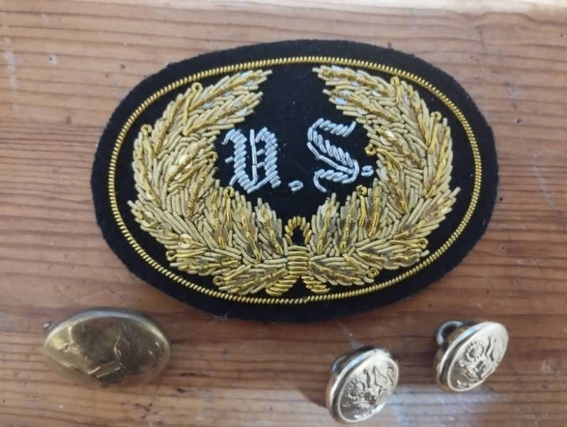 Civil War - Großes Gesticktes Mützenabzeichen der Union - 8 x 5,5 cm - unbenutzt - plus 3 US Knöpfe , Messing - Privatverkauf