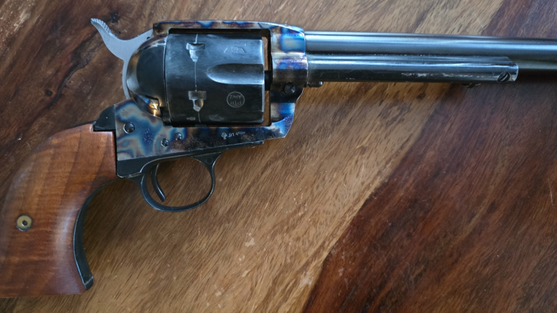 Texas Scout mit 7,5 Zoll Lauf und buntgehärtetem Stahlgehäuse gefertigt mit exzellenter Bläuung .