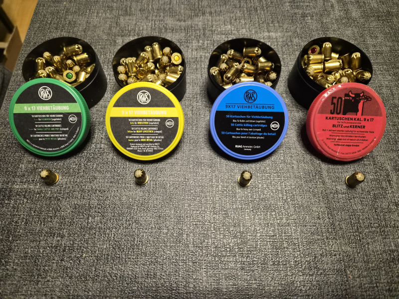 Ich biete ein Set von RWS aus allen vier Sorten für Schußgeräte im Kaliber 9mm x 17mm ( 169 Schuß) an.