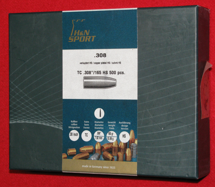 Zum Verkauf kommen 500 Geschosse H&N 165gr / DIA 308 Kegelstumpfgeschoss, siehe Bild