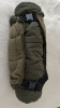 Obermaterial aus Loden, Innenfutter aus Kettgewirk, Nylon Schultergurte mit Steckschnallen zur Anpassung an die Körpergröße, seitlicher 2-Wege-Reißverschluss, aufgesetzter Muff mit 2 großen Eingriffen für warme Hände.