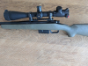 Biete hier eine Custom Matchbüchse Remington 700 XCR Compact Tactical im Kaliber .308 Win. mit Matchabzug an. Die Waffe verfügt über einen gefluteten 20 Zoll Lauf mit einem 1:12 Drall und 416 Stainless Steel Lauf mit tryNyte Finish. Das Waffensystem liegt in einem hochwertigen Bell & Carlson Schaft aus Aramidfaser verstärktem Verbundwerkstoff auf einem im Schaft eingebetteten Aluminiumblock absolut spielfrei auf und sichert durch das freie Schwingen des Laufs damit höchste Präzision und Wiederholbarkeit beim Schuss. Der Kammerstengelgriff wurde durch ein griffigeres Snipermodul ersetzt. Die Magazinart wurde ebenfalls verändert, normale Serie ist hier ein Klappdeckelmagazin. In diese Waffe wurde ein Kühn Aluminiummagazinschacht eingebaut der Stahlmagazine der Fa. AICS aufnimmt (ein Fünfer Magazin gehört zur Waffe). Die verbaute hochwertige Zieloptik ist ein Leupold Mark 4 6,5-20 x 50 ER/T M5 mit Mil Dot Absehen und Butler Creek Kappen. (diese Optik ist so robust und Präzise, dass die US Armee diese Optik auch auf schweren Waffen im Kaliber 50 einsetzt). Auch die ZF Montagekomponenten sind von Leupold, die Picatinny Schiene sowie die Mark 4 ZF Ringe sind aus vollem Stahl gefertigt. Waffe wird Inclusive X-Large Polymer Hard Case Waffenkoffer und hochwertigem Gewehrriemen verkauft.