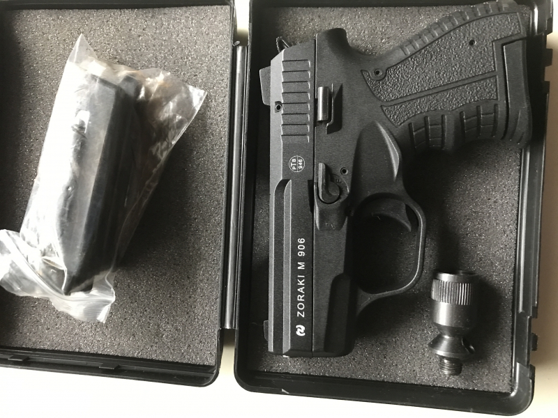 Verkaufe aus Sammlerauflösung: Zoraki M 906 Pistole 9mm Gas-Signalpistole, in Schwarz-Chrom Ausführung, das erste 906 Modell Kenner wissen, ohne Patronenlagerschwächung rechte Seite, PTB 946 Bj. 2017 dazu noch 2 Ersatz-Magazine und Abschussbecher. Die Pistole ist neuwertig ohne Kratzer und ungeschossen, Schrankware, im Originalzustand mit Kassette. Bei Sofortkauf gibt es noch 2 Pack a 25 Super Flash 9 mm Platzpatronen (mit Super Blitz- Effekt ) im Wert von ca. 40,- Euro dazu. Diese Patronen sind sehr selten und zur Zeit nicht erhältlich.