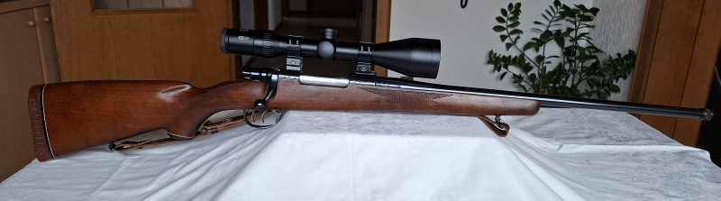 Der Repetierer hat deutschen Stecher, Gummischaftkappe, Klappdeckelmagazin, Backe, Gewinde 15/1 für Schalldämpfer, Lederriemen und Putzschnur. Das ZF ist mit LP und Aufschubmontage alles im guten Zustand, paar kleine kaum sichtbare Kratzer im Schaftholz.