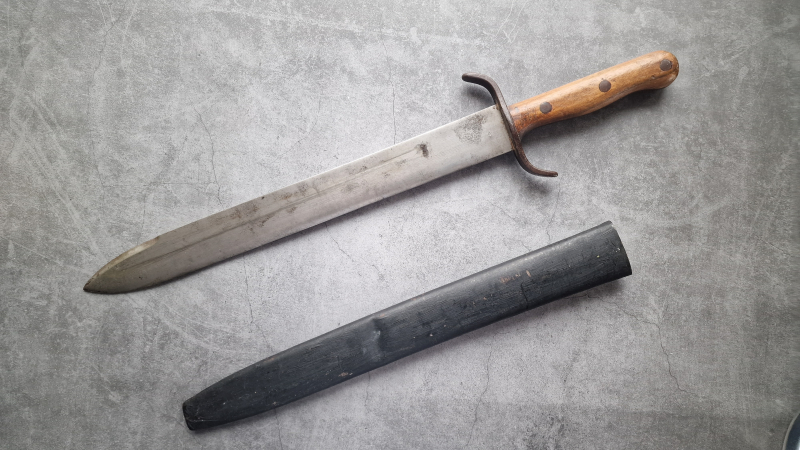 Österreichisches Faschinenmesser / Pioniersäbel, Herstellungsdatum unbekannt. Prägung "R" und ein Wappen, siehe Fotos. Länge 54,3 cm.