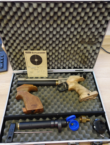Mit dabei ist ein Koffer , eine zweite Kartusch mit Gewichten sowie etwas Zubehör. Eine Gebrauchsanweisung für eine Walther CP 2 ist auch noch vorhanden.