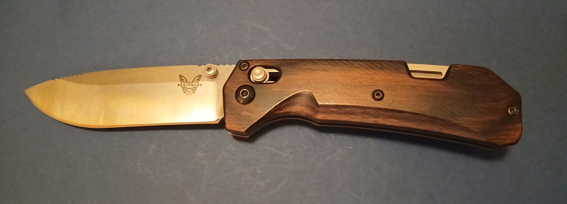 Biete aus meiner Sammlung ein Benchmade Hunt Grizzley Creek mit wunderschönem Walnussholz an. Die Klingen sind rasierscharf abgezogen.