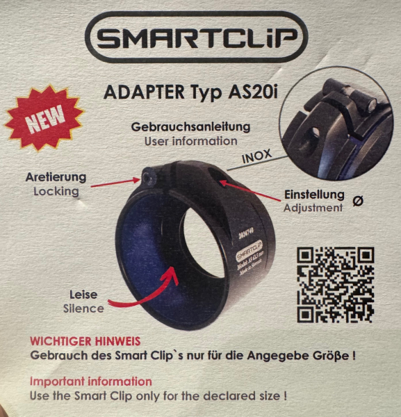 Sie bieten auf einen neuen, nie gebrauchten Smartclip Adapter Model AS 58 mm. Kann auch in 97236 Randersacker abgeholt werden, dann entfallen die Versandkosten. Mit Originalverpackung.