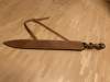 Verkaufe ein Schwert, das ich vor Jahren von einem Sammler gekauft habe. Die Klinge ist aus "Feuersturm-Damast" geschmiedet, der Griff besteht aus Rosenholz. Die Länge = 80 cm; Klingenlänge = 58 cm; Grifflänge = 22 cm; Klingenbreite = 4,5-5 cm; Klingenstärke = 4 mm.