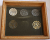 Die Medaillen wurden benutzt. Sind in einem gutem Zustand mit kleine Lagerspuren. Der Kasten läst sich öffnen und ergänzen. 25 x 21,5. Sie kaufen genau das was sie sehen. Anfragen beantworte ich gerne.