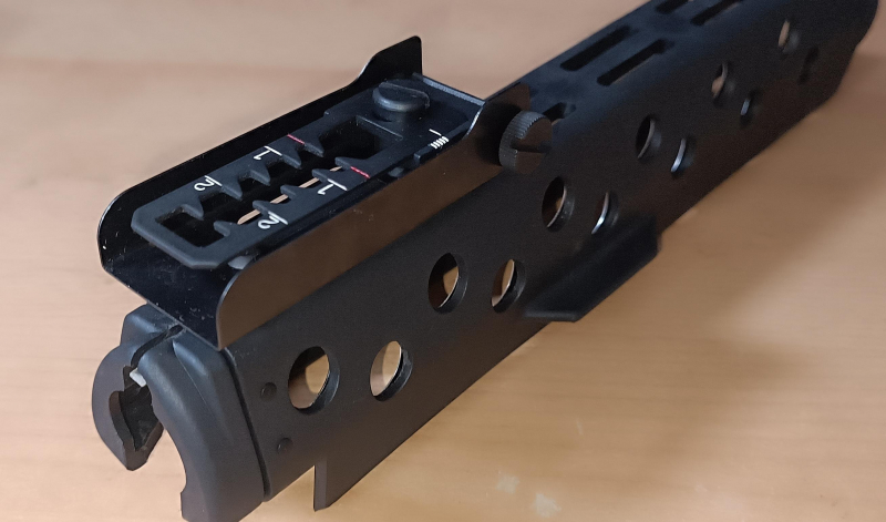It is constructed of strong, lightweight polymer, and features a foldable front sight to aid in aiming an M203 launcher.